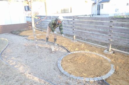 リビングの前のちょっとしたスペースに、お得意の円型花壇(菜園)を奥様のリクエストにお応えして