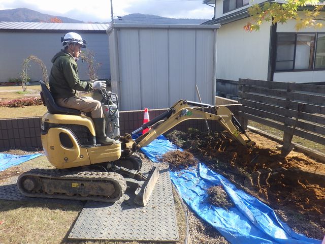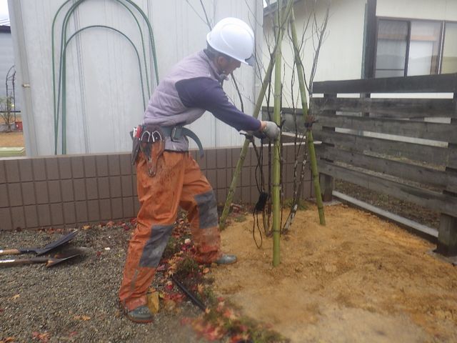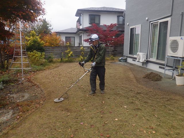 樹木を剪定し、伸び過ぎた芝生をカットし、土の入れ替えも行いました。