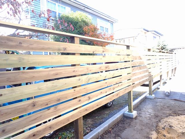 お隣りとの目隠しには、ウッドフェンスを建てました。