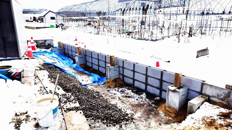 農道との境界にもブロック積を行い、土留にしました。